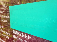 С момента проведения первых работ у нас остался образец шрифта, которым выполнены остальные надписи на надгробье. По образцу мы изготовили трафарет, наклеили его на памятник.